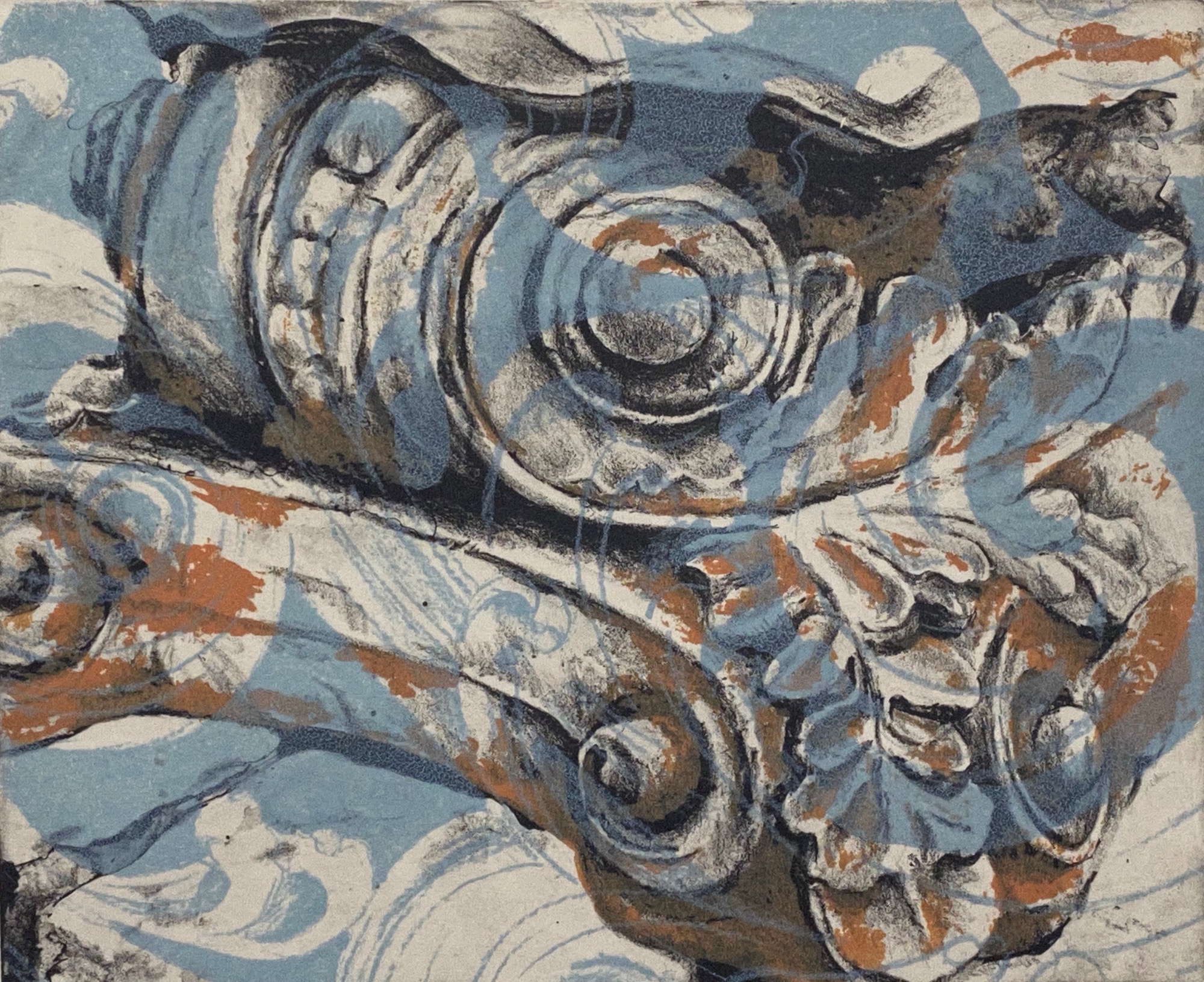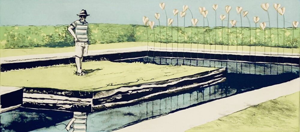My initial practices employed only one printmaking method per print – typically lithography, silkscreen or etching. Once I began combining these methods together, my imagination ignited with the endless possibilities. I am intrigued with the interplay between methods as they are overlapped and layered within the print.